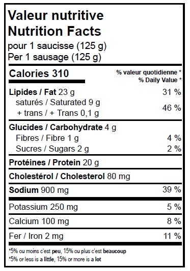 Notre saucisse parmesan et bacon est à la saucisse ce que la salade César est à la salade, un incontournable repas au goût unique et réconfortant. On rapporte même que César lui-même en a fait l’un de ses repas préférés! Dans l’assiette, elle fait vraiment passer les accompagnements au second plan !